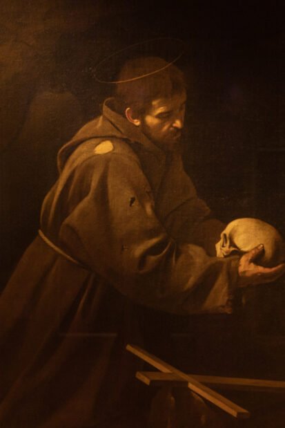 Questa eccezionale visita guidata prosegue poi nell’adiacente Museo, che racconta la storia dell’ordine e le cui otto sale sono state ricavate in quello che originariamente era il Convento dei Cappuccini, annesso alla chiesa barocca di Santa Maria della Concezione. Il percorso espositivo, che presenta dipinti, manoscritti, oggetti sacri e paramenti liturgici, culmina con un capolavoro: il San Francesco in Meditazione di Caravaggio, dipinto dal Merisi nel 1606 appositamente per il Convento dei Cappuccini.