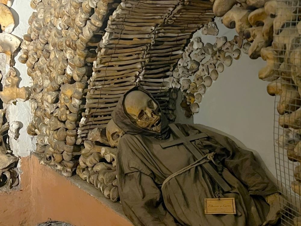 L’ingresso della Cripta è sormontato da un’inscrizione inequivocabile: “Quello che voi siete noi eravamo; quello che noi siamo voi sarete”.